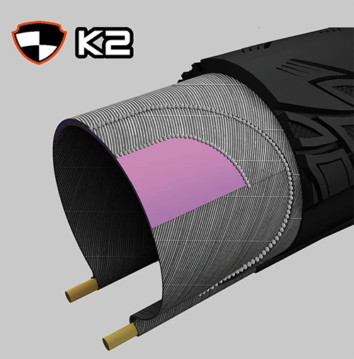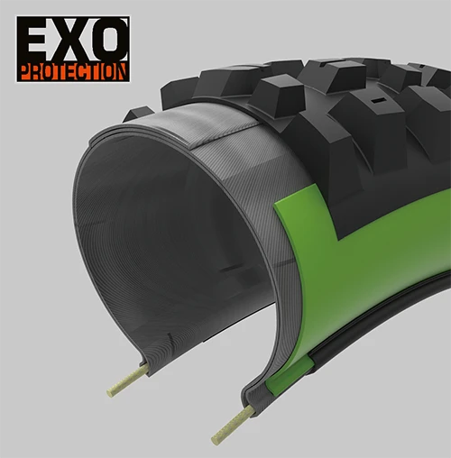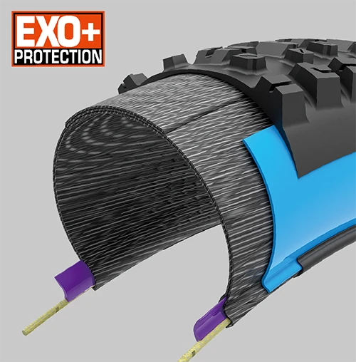 EXOにシルクシールドを組み合わせ、サイドカットとパンクのリスクをさらに低減させるプロテクション テクノロジー。アグレッシブなトレイルライド、エンデューロ ライディング、E-MTBに最適です。