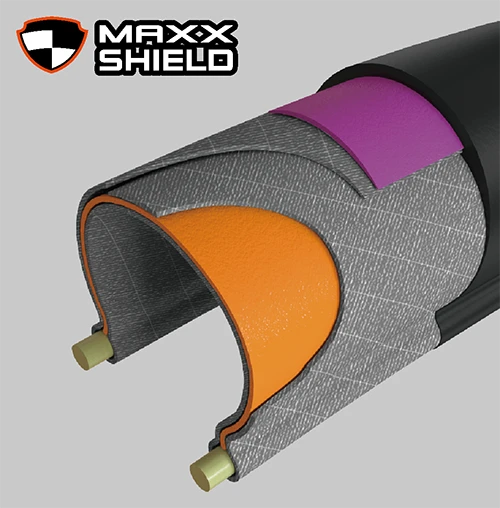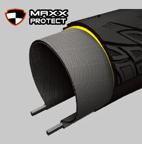 ケーシングにマキシス独自の素材を組み合わせ、トレッド直下を守るプロテクション テクノロジー。耐パンク性能と引き裂き強度を向上させ、転がり抵抗も減少させています。