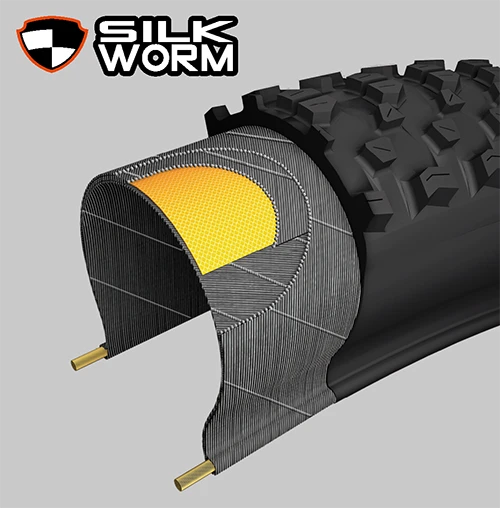 マキシス タイヤの中でも最高レベルのプロテクション テクノロジー。「シルクワーム」と同じ素材でビードからビードまでを覆い、さらに「ケブラー コンポジット」を重ねて最高の耐パンク性能を実現しています。